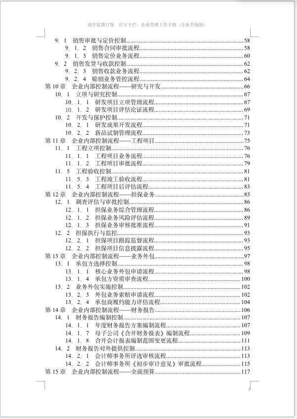 本节给各位会员用户,更新的是2021全套企业内部控制流程合集:包含企业战略、人力资源、产品质检、企业文化、业务拓展、资产管理、采购业务、销售业务、工程项目、产品研发等各个环节。