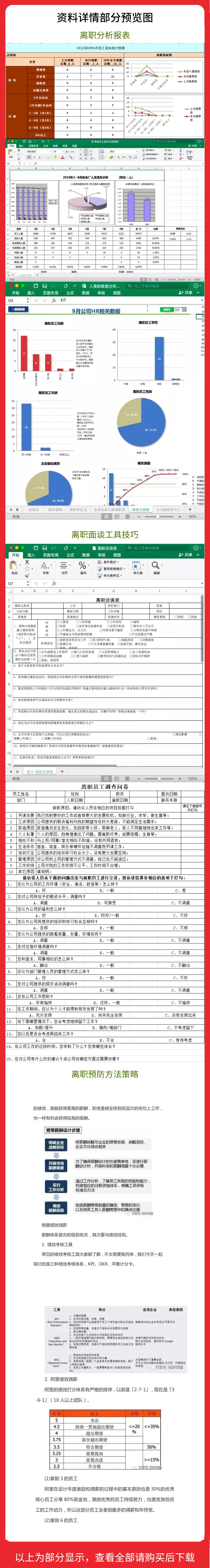 本期带来《员工离职分析与预防工具包》。这套工具包共分3大模块:员工离职分析报表、离职面谈工具技巧、离职预防方法策略。