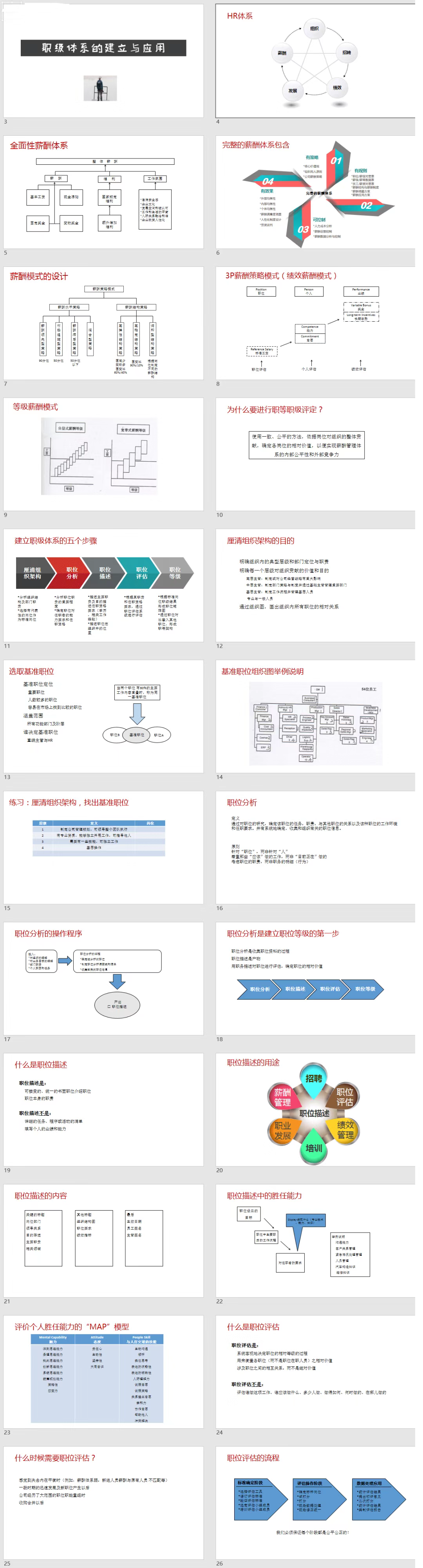 15套职级体系设计PPT,带完整内容,适合自学及内部培训使用。部分PPT截图展示如下: